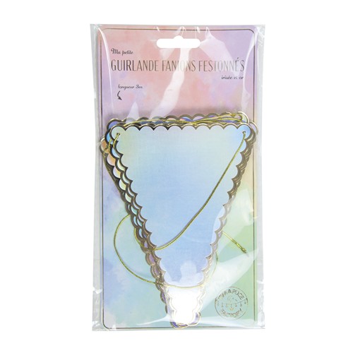 RDT3343935GUIRLANDE FANIONS FESTONNES IRISÉS ET OR LONGUEUR 3M HAUTEUR 15CM LARGEUR 10.6CM