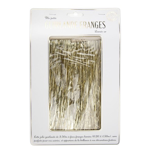 RDT3343485JOLIE GUIRLANDE A FINES FRANGES LAMÉES DORES LONGUEUR TOTALE 3.50M - LONGUEUR DE LA PARTIE FRANGÉE 1.50M HAUTEUR 20CM
