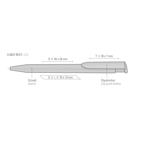 RDT2657329Stylo bille rétractable avec corps opaque mat et poussoir à clip en plastique recyclé.