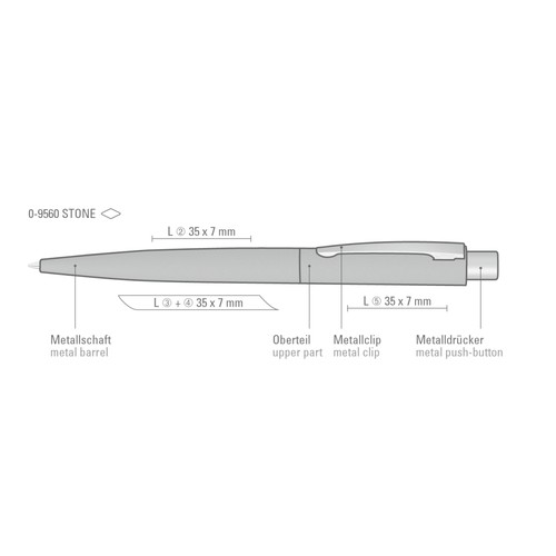 RDT2657516Stylo bille rétractable en métal avec une apparence de béton reconstruit ou de pierre Clip en métal et bouton chromé mat.