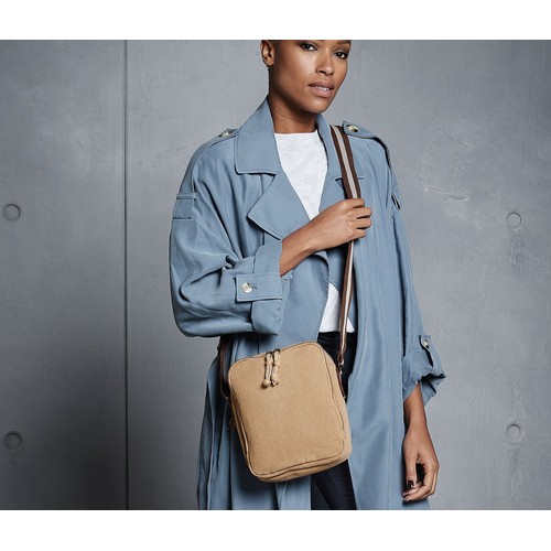 RDT3298313Mini sacoche en toile Vintage Étiquette détachable TearAway, facile à ré-étiqueter. Poche frontale conçue pour le marquage. Compartiment principal avec fermeture zippée. Sangle en toile bicolore. Bandoulière ajustable.