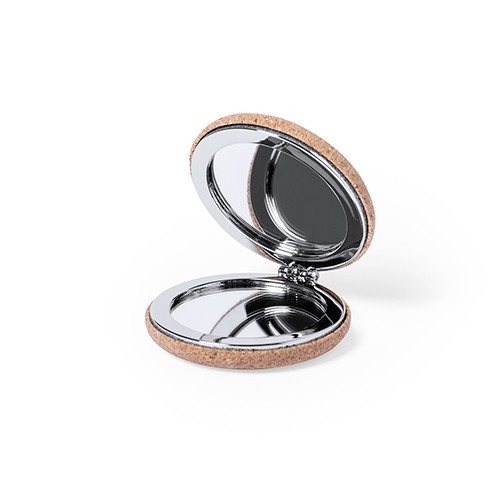 RDT2086101Miroir pliant ligne nature en liège naturel et métal chromé. Deux miroirs intérieurs : 1X / 2X. Présenté dans une boîte individuelle éco-design Matières : Liège