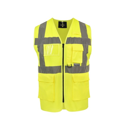 RDT3280244Gilet de sécurité multifonctionnel Certifié EN ISO 20471:2013 + A1:2016 ; le coloris orange également conforme à la norme GO/RT 3279. 1 bande réfléchissante de 5cm de large autour du corps. 2 bandes réfléchissantes de 5 cm de large sur les épaules. Fermeture zippée sur toute la longueur à l'avant. Maille respirante au-dessus des bandes réfléchissantes, tissu à haute résistance en dessous. 2 poches avec rabat auto-agrippant. Multifonctionnel : poche pour carte d'identité, poche pour smartphone.