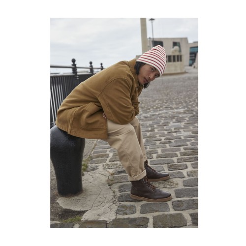 Bonnet rayé avec rabat