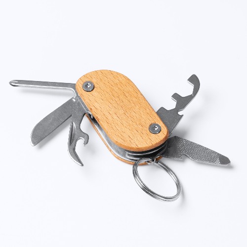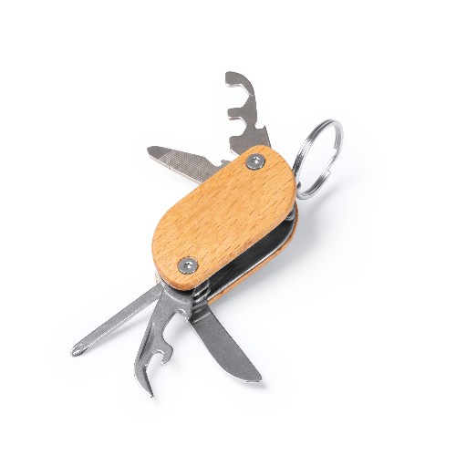 RDT3111000Outil multifonction avec corps en bois et ustensiles en acier inoxydable. 5 fonctions : lime, couteau, ouvre-boîte, décapsuleur et tournevis. Matières : Bois et acier inoxydable