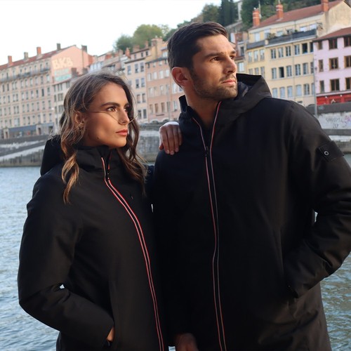 RDT2916675Veste Premium, enduction PU, déperlanteToile 100% polyester avec doublure 100% polyesterCapuche doublée et matelassée2 poches zippées ainsi qu'une poche poitrine avec fermeture invisibleFermeture centrale bicolore avec un double zip1 poche portefeuille intérieurePoignets des manches en bord côte pour un meilleur confort etprotection au froid1 zip invisible au bas du vêtement pour accès à la personnalisation1 patte de boutonnage avec 2 boutons sur la manche gauche pour apporter une solution de marquage innovante Point fort 1