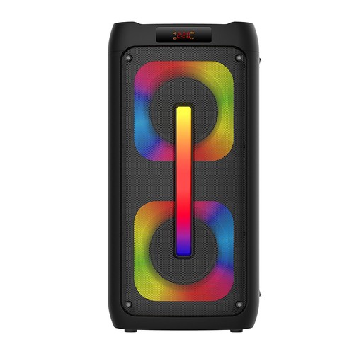 RDT2902256Tout pour plaire quand vient l'heure de faire la fête. Cette petite enceinte colonne (21 cm au garrot) ne cache pas son jeu : elle est bien là pour lancer la fête et assurer l'ambiance.