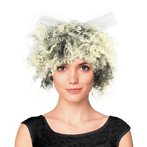 RDT3072903PERRUQUE 80'S Du bon cheveu bien sec, bien frisé et bien décoloré comme on les aime, avec une coupe d'enfer, et un joli nœud en tulle, voilà qui vous propulsera direct dans les années 80! Cette perruque complétera parfaitement votre déguisement de rockstar, (oui oui on pense à Madonna!)!