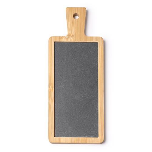 RDT2797640Planche à découper en bambou et ardoise, avec poignée pratique. Livré en pack individuel éco-conçu. Matières : Bambú y pizarra