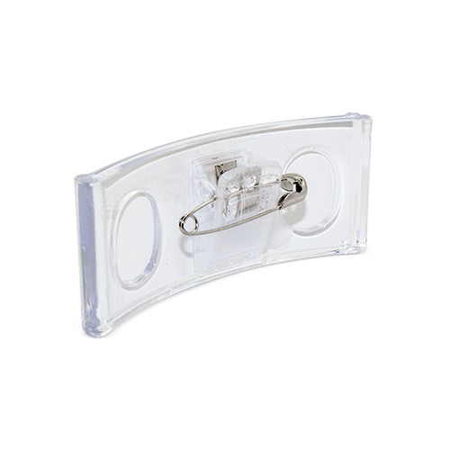 RDT3017790Plaque nominative incurvée en méthacrylate. Muni d'une épingle à nourrice pour l'attacher aux vêtements. Muni d'un insert en papier pour écrire le nom. Matières : Méthacrylate