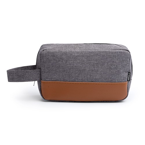 RDT3017677Pochette fabriquée en RPET avec insert en PU à la base. Poignée pratique assortie pour le transport. Grand compartiment avec fermeture éclair. Étiquette extérieure en RPET. Matières : RPET, PU