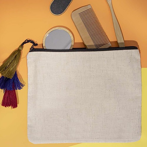 RDT2081541Pochette avec fermeture à glissière noire contrastée et pendentif en forme de frange. Matières : Chanvre