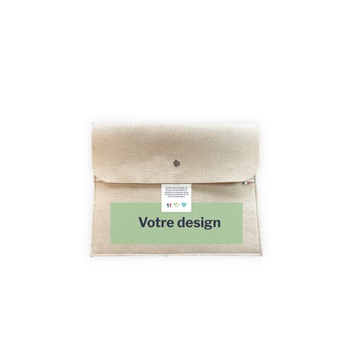RDT3216152Pochette d'ordinateur/tablette en feutrine d'origine végétale, pour tablette 10 pouces, personnalisable dans une zone dédiée, par transfert en quadrichromie. Fil de couture blanc.