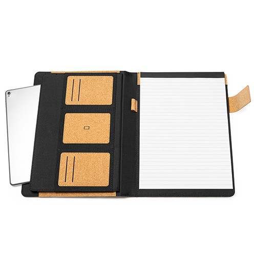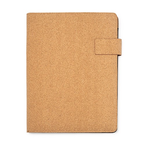 RDT2081508Portfolio A4 en liège naturel avec fermeture aimantée. Comprend un bloc de 30 feuilles blanches lignées amovibles, 4 pochettes intérieures et un porte-stylo. Matières : Liège