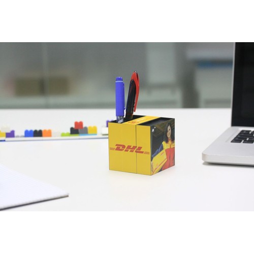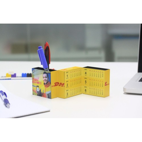 RDT3310521Un étonnant pot a crayon qui, lorsqu'il est déplié, se transforme en un panneau d'affichage panoramique directement sur le bureau des utilisateurs.