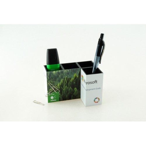 RDT3310511Un pot à crayons amusant et pratique, imprimé en quadri offset. Cet article très utile se compose de 4 compartiments pliables reliés entre eux. Chaque nouveau pliage révèle une œuvre d'art plus vivante, le pot à crayons cubique de 70 mm se transformant comme par magie en un panneau panoramique de 140 mm et vice-versa.