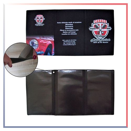 RDT2475598100 % personnalisée à l'image de la concession ou du garage. Impression quadrichromie HD. Optimisez la durée de vie de la carte grise en la protégeant des intempéries. Conception spécialement étudiée pour faciliter l’insertion du document et sa lecture sans avoir à la retirer de son support. Pliage en 3 volets.