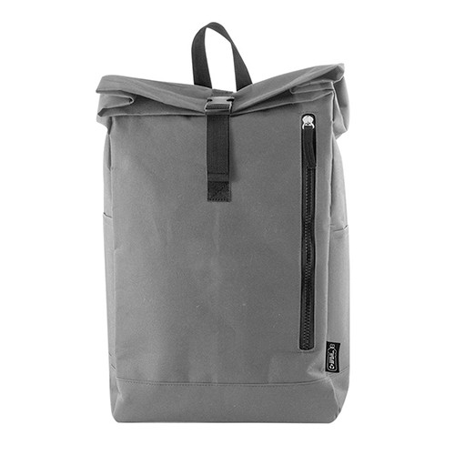 RDT2879368Sac à dos roll-top en polyester RPET 600D, fermeture avec boucle en plastique. Poche avant avec fermeture éclair. Poche latérale ouverte. Poignée pratique pour le transport. Bretelles réglables. Etiquette RPET externe. Matières : Polyester RPET 600D