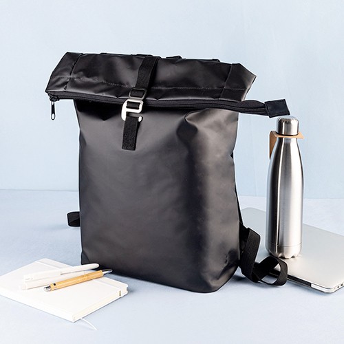 RDT2797664Sac à dos roll-top pour ordinateur portable, réalisé en bâche, fermeture zippée et sangle avec crochet métallique. Convient aux ordinateurs portables de 15". Poche intérieure zippée. Dos rembourré. Bretelles réglables. Poignée de transport pratique. Matières : Lona 600D