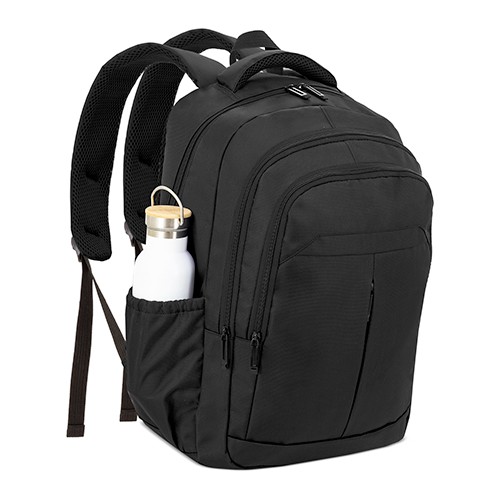 RDT3017253Sac à dos pour ordinateur en polyester. Compartiment principal spacieux avec poche rembourrée pour ordinateur pouvant contenir des ordinateurs portables de 17 pouces. Deux compartiments zippés. Poche frontale zippée. Poches latérales élastiques. Dos rembourré. Bretelles rembourrées réglables. Matières : Polyester