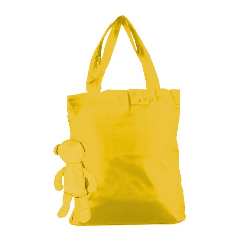 RDT2084636Sac shopping pliable avec compartiment principal ouvert, anses courtes renforcées, repliable en forme de nounours avec fermeture éclair. Matières : Polyester laminé
