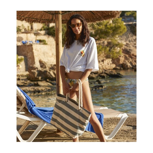 RDT3272119Sac de plage rayé en coton canvas durable. Anses en corde épaisse. Peut être porté à la main ou sur l'épaule. Longueur des anses : 60cm. Surface d'impression : 50x28cm.