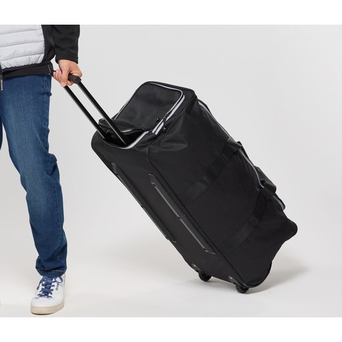 RDT3297256Grand sac de voyage à roulettes. Poignée télescopique. 2 anses. Poche latérale et poche centrale en forme de U. Zips contrastés. Surfaces d'impression avant : 16x12cm et côtés : 16x18cm.
