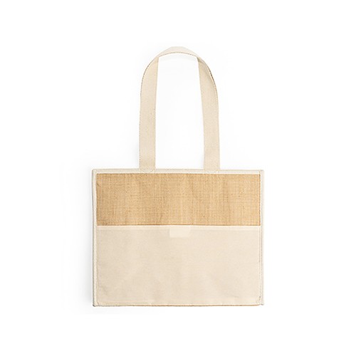 RDT2086022Sac isotherme en jute avec doublure intérieure en aluminium, poche avant en toile avec fermeture velcro. Matières : PP, Jute laminé, Coton, Aluminium - 320 gr/m2