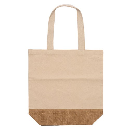 RDT2879837Sac shopping en coton recyclé et jute de 330 g/m², grand compartiment principal, poignées renforcées de 70 cm de long. Matières : Coton recyclé 330 g/m².