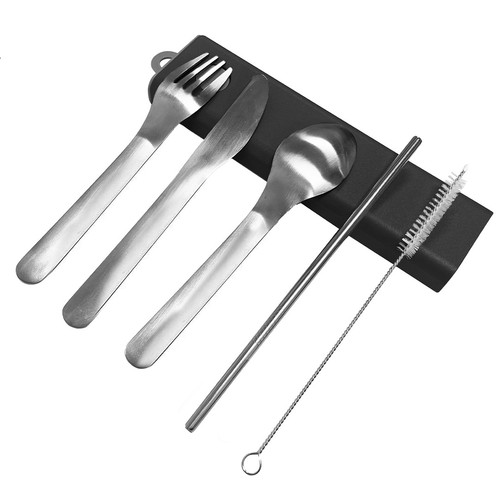 Set de couverts 5pcs acier inoxydable avec étui - Environnement & Nature