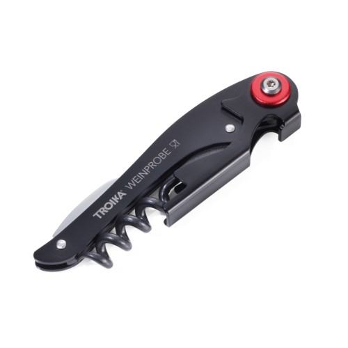 RDT3210006Set à vin composé d'un couteau de serveur et d'un bouchon de bouteille sous vide, tire-bouchon repliable, avec couteau et décapsuleur, broche à revêtement antiadhésif, bouchon en silicone adapté aux différentes tailles de bouteilles, approuvé pour usage alimentaire, ABS, acier inoxydable, silicone, mat, noire/rouge