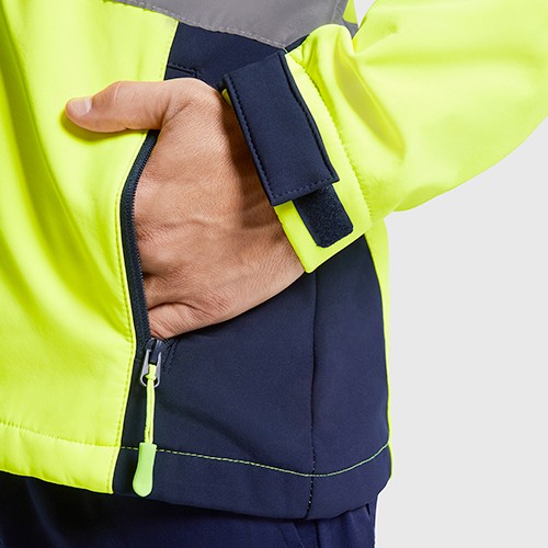 RDT2088974Soft shell bi-couleur haute visibilité, résistant à l´eau, tissu interieur doux avec une grande capacité de chaleur Deux bande reflechissantes sur la poitrine et manches