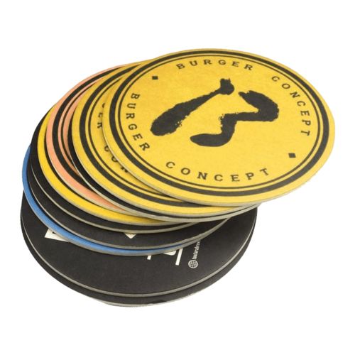 RDT2032443Carton absorbant spécial sous-bock 580g certifié FSC, épaisseur 1,4mm. Version express (délai 2 semaines). Avec impression recto & verso (visuels identiques ou différents).
