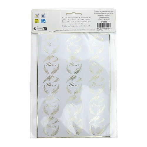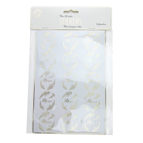 RDT2399530STICKERS MERCI BLANCS ET OR X 30PCS DIMENSION DES PLANCHES : A5