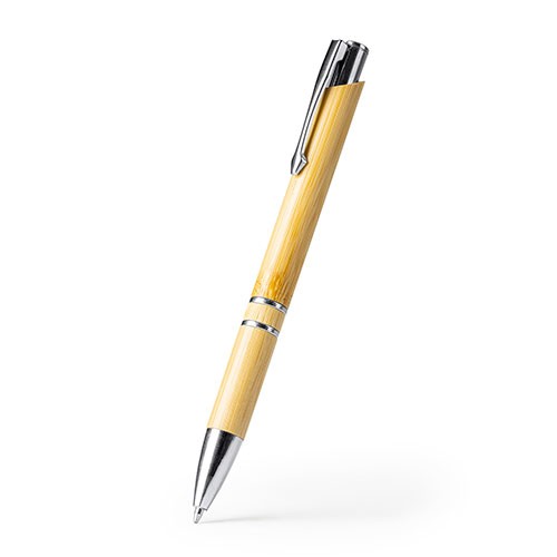 RDT2086237Stylo bille élègant avec mécanisme rétractable en bois de bambou et détails silver brillants. Encre jumbo bleu. Matières : bambou