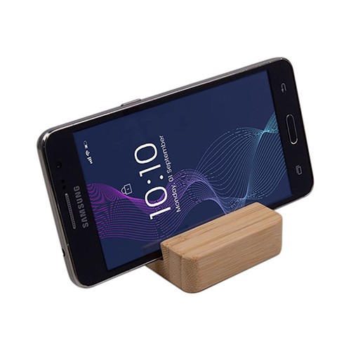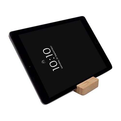 RDT2081903Support pour mobile et tablette en bambou. Un coté pensé pour les portables et l'autre pour les tablettes. Matières : Bois de pin