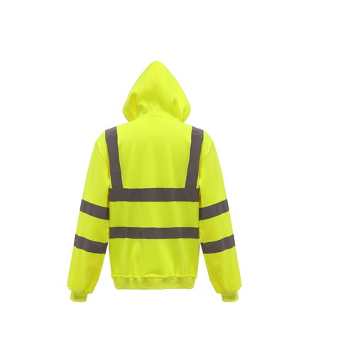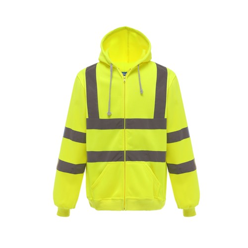 RDT3287795Sweat grand zip. 2 bandes verticales et 2 bandes horizontales réfléchissantes cousues de 5cm. 2 bandes réfléchissantes sur les manches. Poignets et ourlet en bords côte. Capuche ajustable par cordon. 2 poches frontales. Double surpiqûre. Conforme à la certification EN ISO20471:2013 Class 3. Hi-vis orange également conforme à la spécification GO/RT 3279.