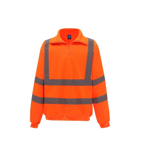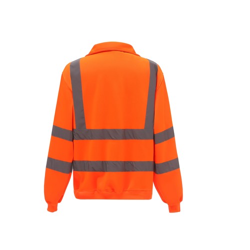 RDT32770142 bandes verticales et 2 bandes horizontales réfléchissantes cousues de 5cm. 2 bandes réfléchissantes sur les manches. Col zippé ton sur ton. Col montant. Poignets et ourlet en bords côte. Double surpiqûre. Conforme à la certification EN ISO20471:2013 Class 3. Hi-vis orange également conforme à la spécification GO/RT 3279.