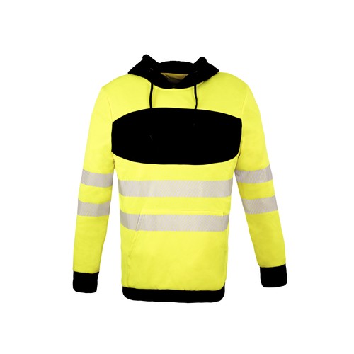 RDT3256418Certifié EN ISO 20471:2013/A1:2016, classe 3. 2 bandes réfléchissantes de 5 cm de large au corps et aux manches. Col et poignets noirs en bord côte. Grande zone d'impression sur la poitrine. Intérieur de la capuche doublé et contrasté. Poche kangourou. Propriétés réfléchissantes selon la norme EN garanties pour 25 cycles de lavage à 60°C.