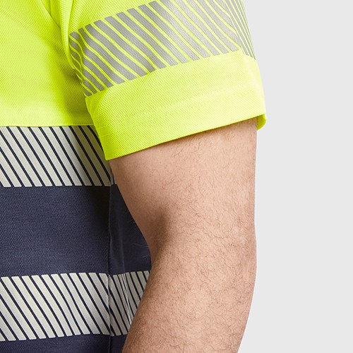 RDT2090167T-shirt technique haute visibilité à manches courtes Deux bandes segmentées haute visibilité sur la poitrine et une sur les manches