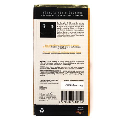 RDT2215290Les noisettes, patiemment mixées pour rendre les éclats invisibles, mêlées à la douceur du chocolat au lait, font du Gianduja un chocolat extrêmement gourmand. Avant même la dégustation, il dégage une odeur intense de noisettes. En bouche, c’est une explosion de saveurs : noisettes subtilement grillées, douceur du chocolat au lait.