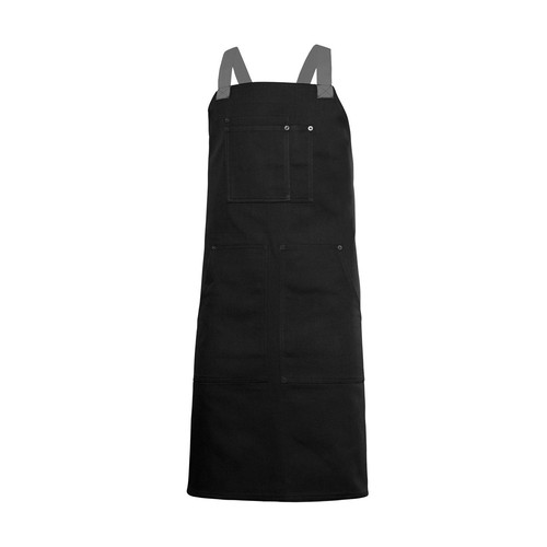 RDT3297265Bretelles croisées dans le dos. Deux liens contrastés aux extrémités pour serrer le tablier. Rivets de style jean. 4 poches : 1 double poche sur la poitrine avec compartiment pour stylo. 2 poches latérales.