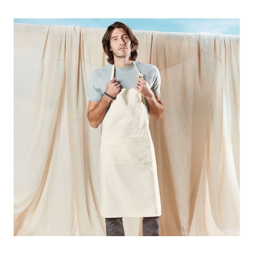 RDT3278079Tablier adulte en coton issu du commerce équitable Tablier certifié Fairtrade. Fermeture au cou par boucle. Longueur des lanières à la taille 100cm. Poche centrale. Surface d'impression 32x38cm.