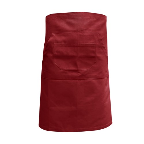 RDT3278635Tablier barman long, 3 poches. Hauteur 62cm - Largeur 90cm. Lavage 60° (étiquette 30° erronée). Longueur de chaque lien pour nouer le tablier : 75cm.