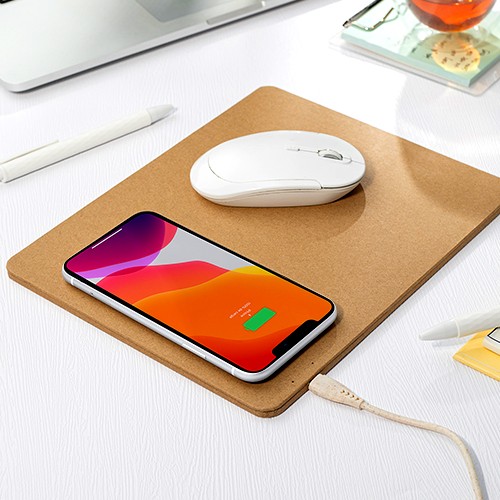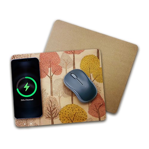 RDT2818348Tapis de souris avec base de recharge sans fil intégrée, fabriqué en carton FSC. Puissance de 10 W. Fourni avec un câble de type C. Dimensions : 23,5 x 20 x 0,5 cm.