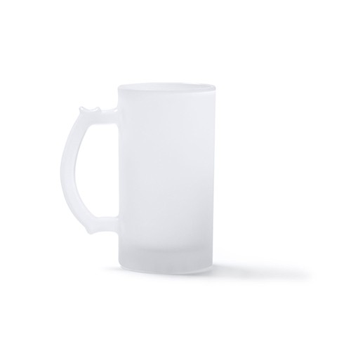 RDT2081286Mug en verre borosilicaté givré, idéal pour la sublimation. Capacité 500ml. Livré dans un seul emballage blanc. Matières : Verre borosilicaté
