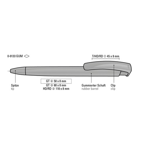 RDT2657524Stylo bille rétractable avec corps triangulaire caoutchouteux et clip opaque brillant.