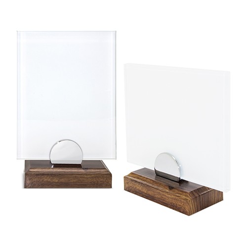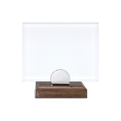 RDT3017560Trophée au design élégant, composé d'une base en bois et d'une plaque de verre appliquée, idéal pour célébrer des événements spéciaux ou des commémorations. La plaque de verre peut être positionnée horizontalement ou verticalement et peut être personnalisée par sublimation.