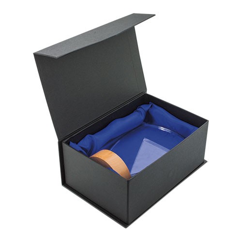 RDT3017810Trophée avec base en bois et plaque en verre. Livré dans un emballage avec intérieur rembourré et fermeture magnétique.