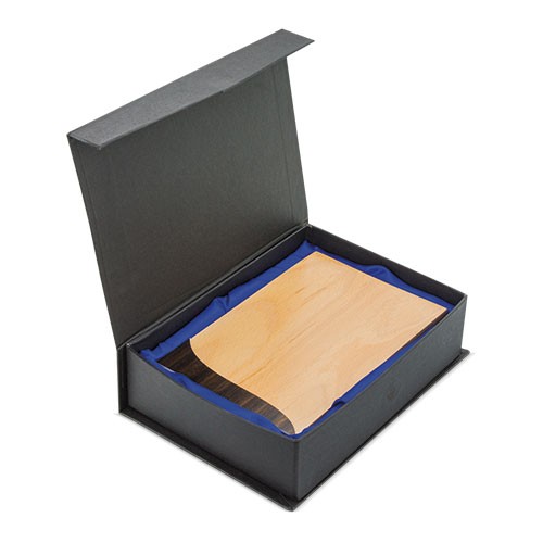 RDT3017669Trophée rectangulaire en bois avec insertion en bois contrastée. Fourni dans un emballage avec un intérieur rembourré et une fermeture magnétique.